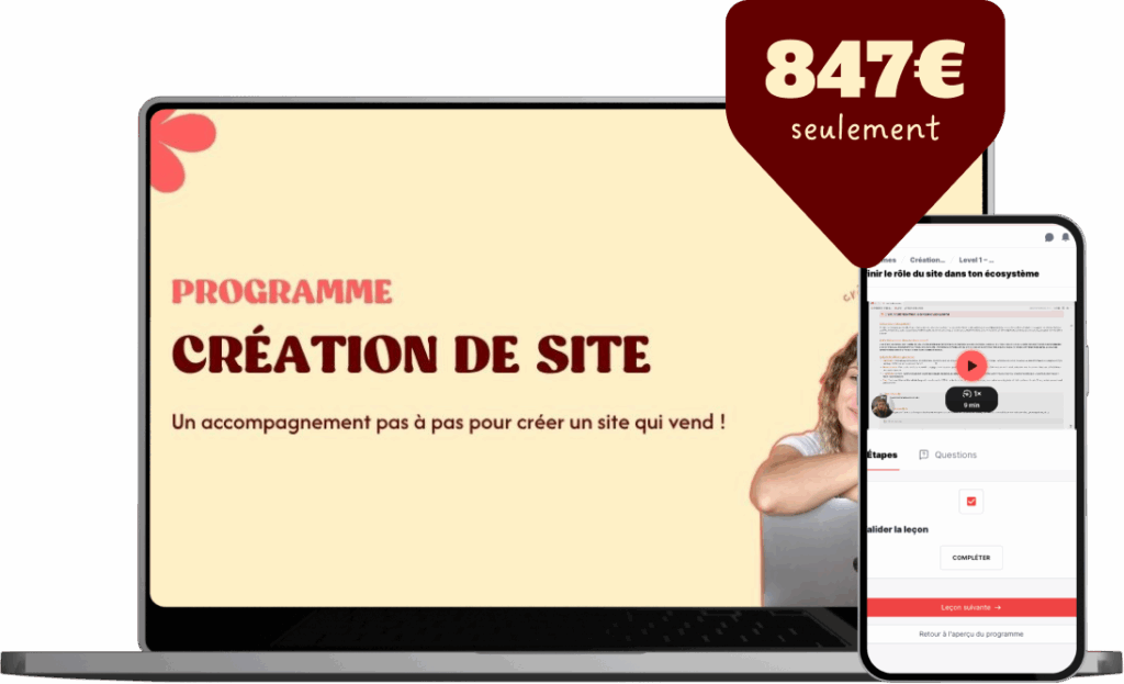 Après avoir accompagné des dizaines d’entrepreneuses à lancer (ou relooker) leur site, j’ai conçu Créer mon propre site pour t’apporter une méthode claire, concrète et motivante.