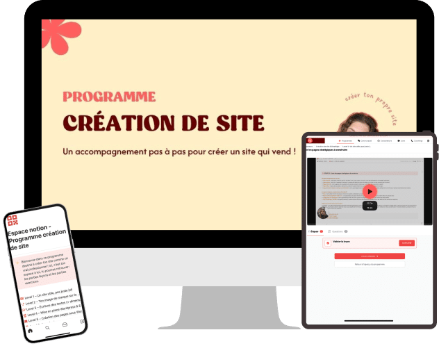 Ce programme t’apprend à faire ton site, oui. Mais surtout, il t’apprend à devenir la femme qui maîtrise son image, sa visibilité et son business en ligne.