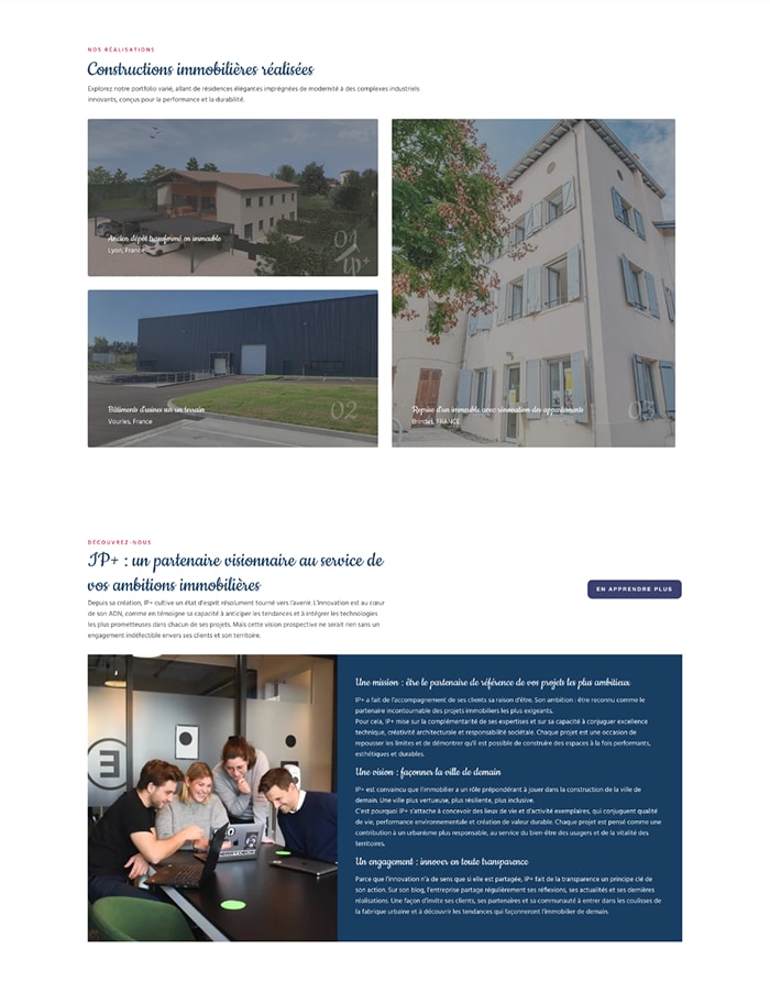 Un site vitrine pensé pour être fonctionnel, lisible et aligné aux valeurs et à l’impact d’IP+ :