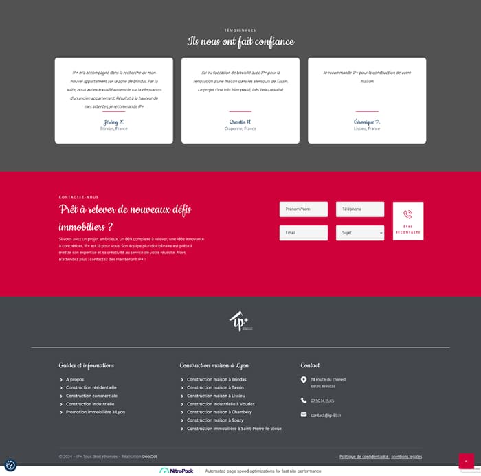 IP+ avait besoin d’un site vitrine capable de présenter ses services de façon claire, professionnelle et impactante, tout en renforçant la visibilité et la compréhension de son univers.