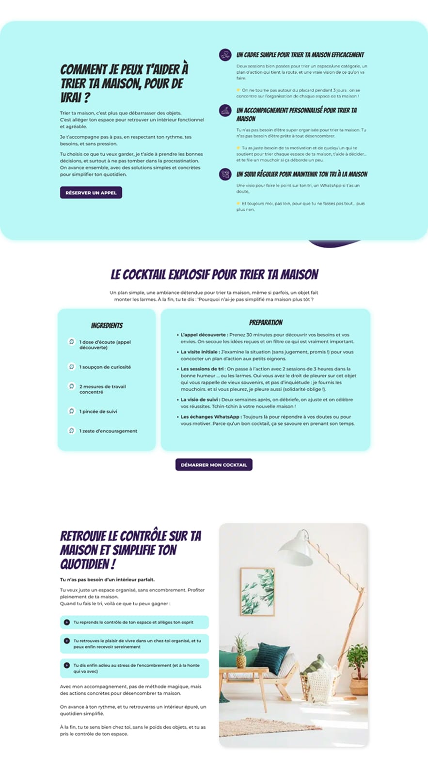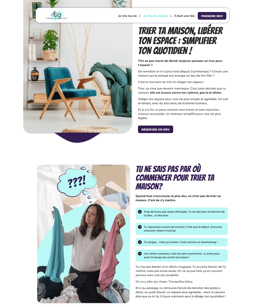 J’ai créé un site vitrine professionnel, construit autour d’un parcours simple et intuitif pour guider l’utilisateur vers l’offre qui lui correspond. Puis j’ai intégré :